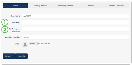 Enter your new password in the 1) 'Password' field, then enter the same password in the 2) 'Confirm your password' field.